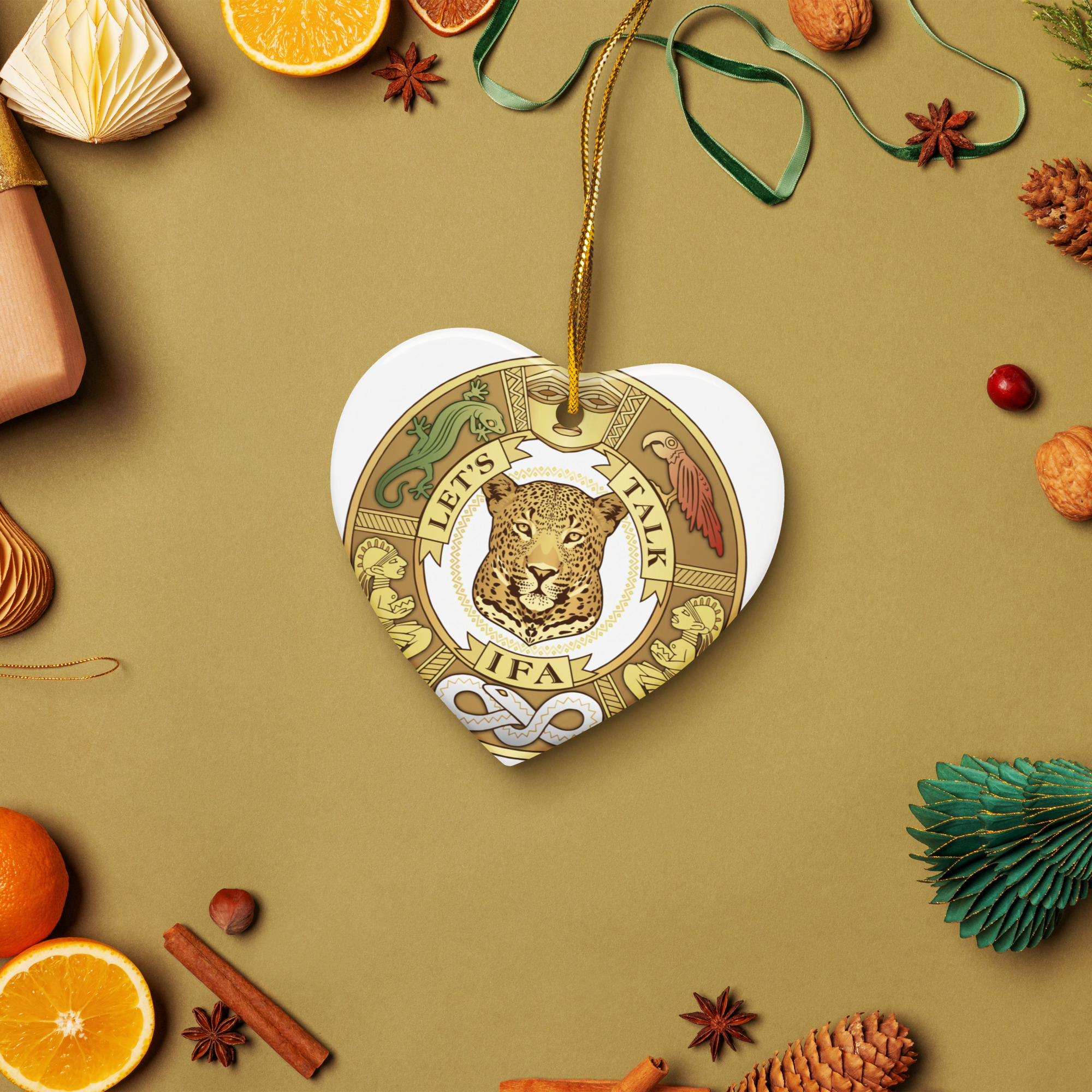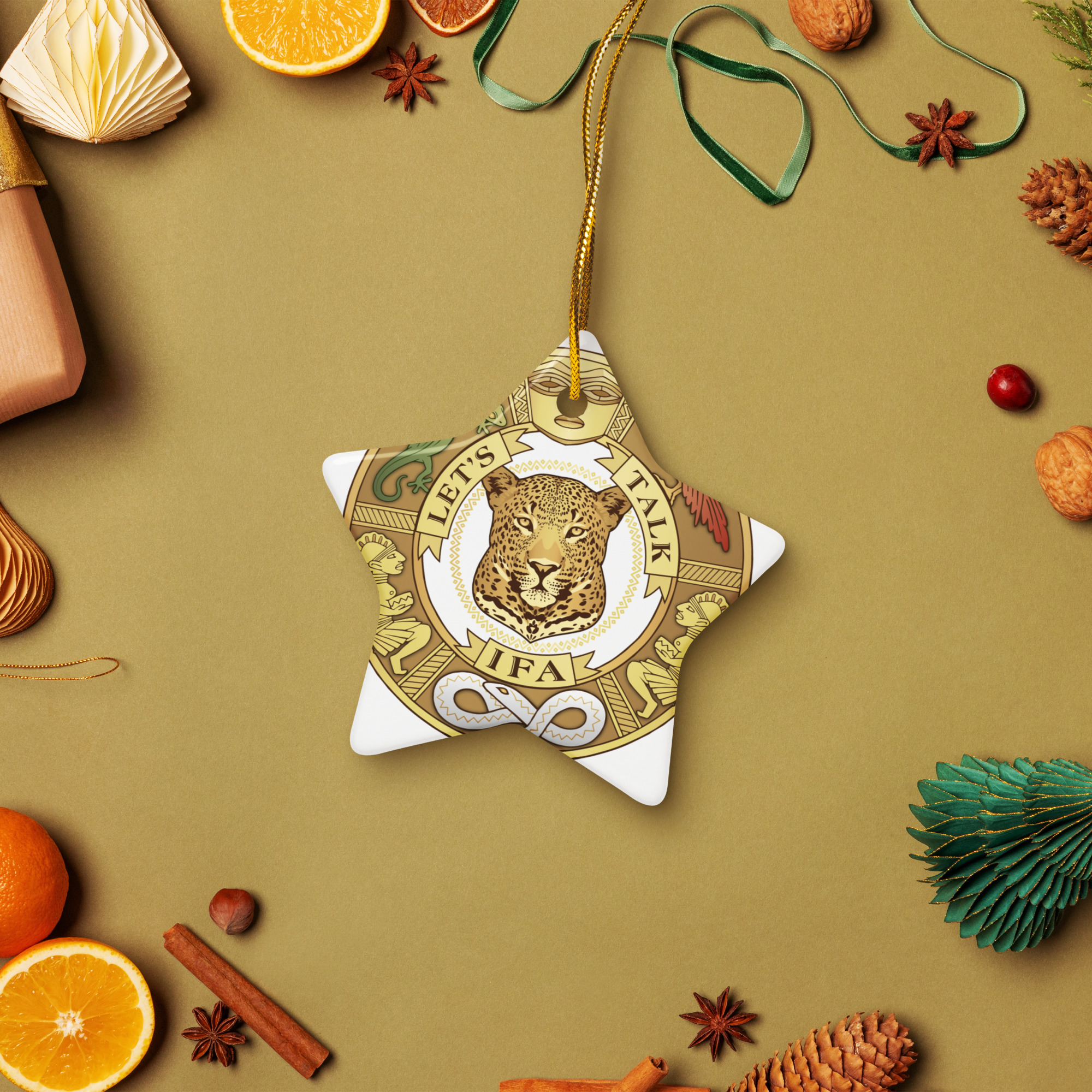 Bring charm to your home with a glossy ceramic ornament available in heart, star, snowflake, or circle shapes. With a smooth finish and elegant gold-toned string, it stands out in any festive setting.